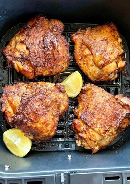 - Place the seasoned chicken thighs in the air fryer basket in a single layer, skin side up. Cook for 25-30 minutes, flipping halfway through. The internal temperature should reach 165°F (75°C) when done.