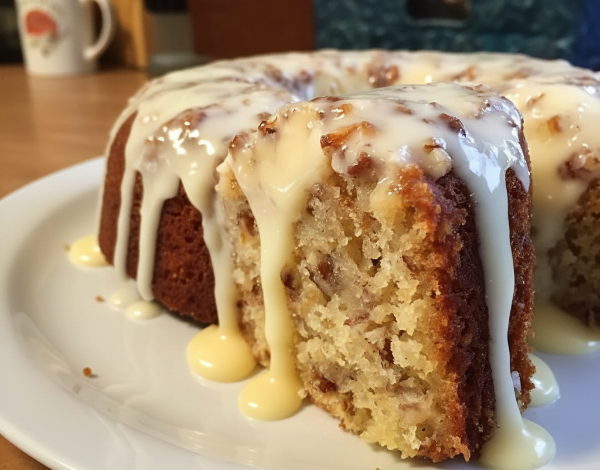 Here is a delicious and detailed recipe for a moist Banana Pecan Cake with a simple Vanilla Glaze.