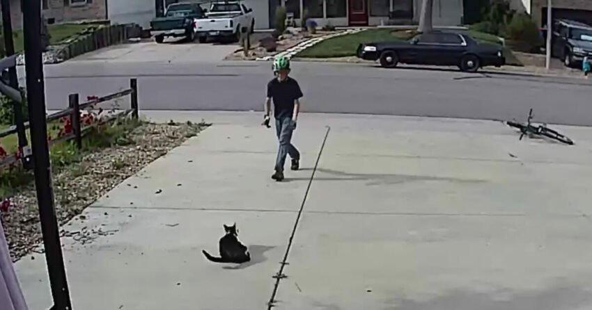 The cat’s true personality comes out as she’s so gentle with her friend and the boy seems so happy to see her and play with her.