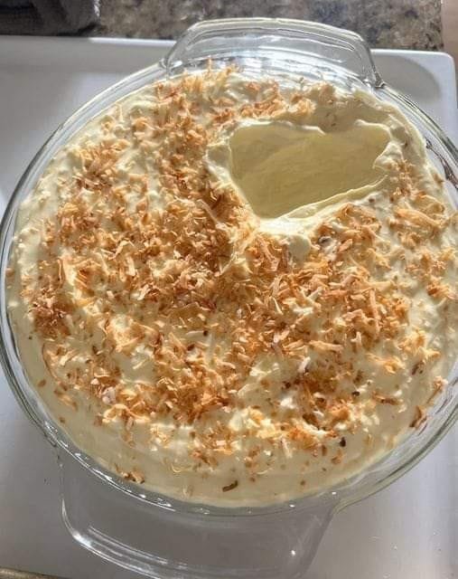 - Spread or pipe the whipped cream over the chilled coconut filling.