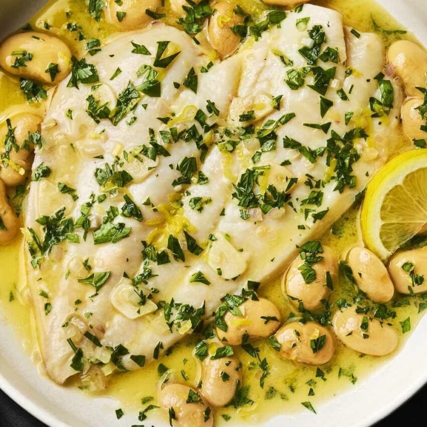 Serve: Spoon a generous amount of the lemony butter beans onto warmed plates. Place a seared flounder fillet on top of the beans. Garnish with extra fresh parsley and a thin slice of lemon for squeezing over just before eating.