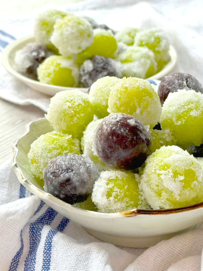 This is a fantastic healthy snack or dessert that mimics the texture of sorbet or tiny popsicles. The lemon juice helps the sugar stick and adds a wonderful tangy contrast to the sweet grapes.