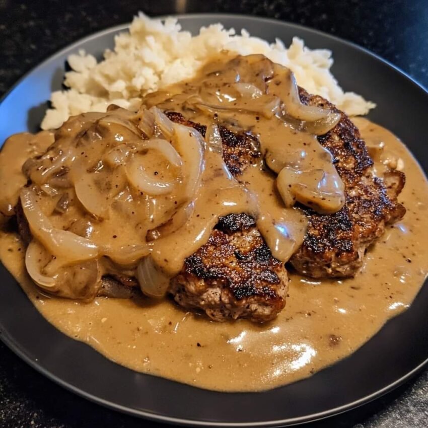 This Hamburger Steaks with Onion Gravy recipe is hearty, flavorful, and perfect for a comforting meal!