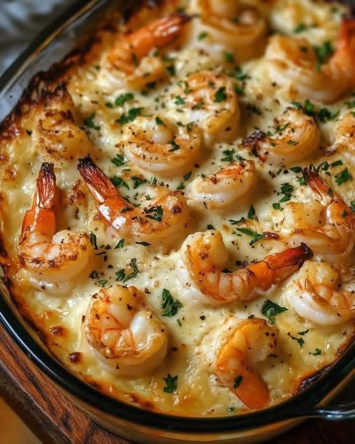 ToggleMozzarella Stuffed Shrimp Alfredo Bake