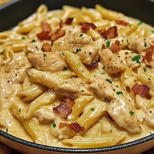 ToggleRich & Velvety Garlic Butter Chicken Pasta with Crispy Bacon