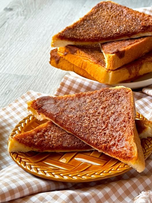 Sprinkle: In a small bowl, mix together 1-2 tablespoons of sugar with ½ to 1 teaspoon of cinnamon (adjust to your taste). Sprinkle the mixture evenly over the buttered toast.